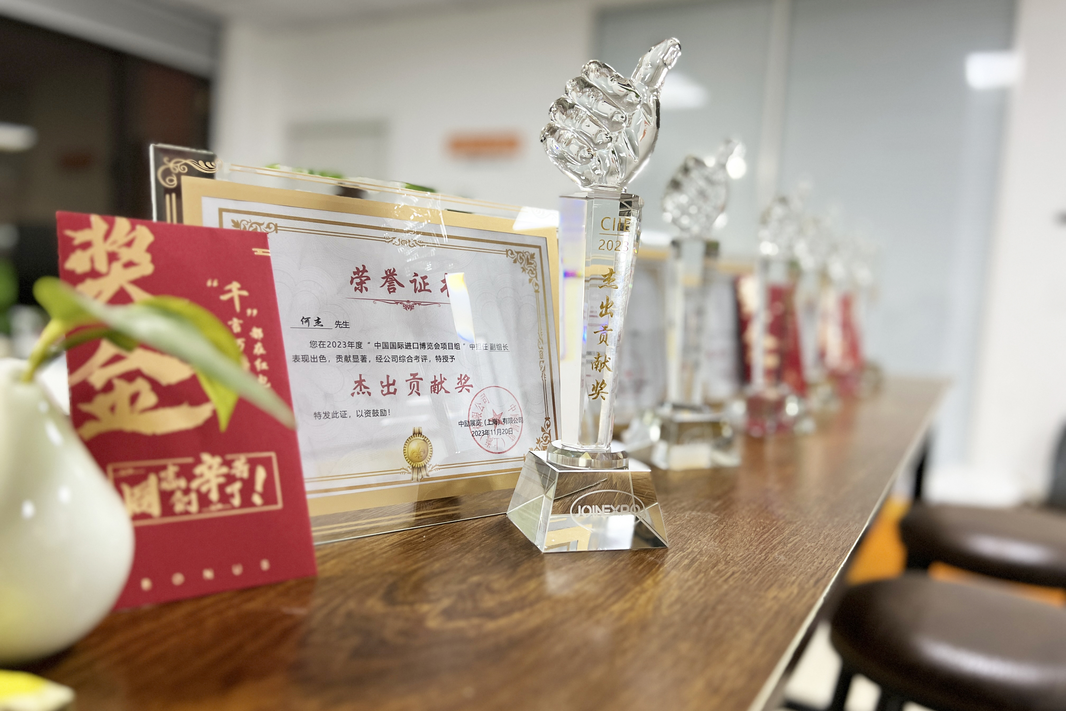 最后是對進博會展臺設(shè)計搭建期間表現(xiàn)突出的個人進行頒獎。在這次進博會中,有許多員工表現(xiàn)出色,他們以專業(yè)的態(tài)度、高效的工作方式和團隊合作精神,為每個展臺的設(shè)計和搭建做出了杰出貢獻。無論是展臺設(shè)計部、國內(nèi)項目部、海外項目部,還是工程部,每個他們都是我們中勵展覽團隊中的閃亮之星,值得我們給予高度贊揚和鼓勵。通過這次頒獎典禮,中勵展覽的領(lǐng)導(dǎo)們向他們表示衷心的感謝,并希望他們能繼續(xù)保持優(yōu)秀的工作品質(zhì),在未來的工作中取得更大的成就。