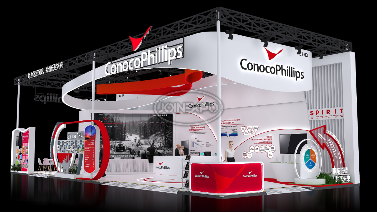自20世紀80年代以來,康菲一直是中國忠誠的合作伙伴,也是中國上游油氣行業(yè)最大的外商投資者之一。在過去近40年中,康菲將在中國的業(yè)務(wù)范圍擴大到了各個領(lǐng)域,包括石油、天然氣勘探和生產(chǎn)、液化天然氣供應(yīng)和其他相關(guān)業(yè)務(wù)。目前,康菲在北京和天津(塘沽)兩地設(shè)有辦公室??捣瞥兄Z以負責(zé)任的態(tài)度參與能源開發(fā)及生產(chǎn),關(guān)注作業(yè)所在地區(qū)的長遠發(fā)展,為利益相關(guān)方創(chuàng)造長期價值。康菲致力于履行企業(yè)社會責(zé)任,以當下亟需解決的民生問題為本,通過長遠并創(chuàng)新的戰(zhàn)略規(guī)劃,希望長期改善當?shù)鼐用竦纳?。中勵展覽為康菲石油設(shè)計搭建的展臺用流暢的線條和簡潔的色彩搭配,構(gòu)筑出讓人賞心悅目的參觀展臺。