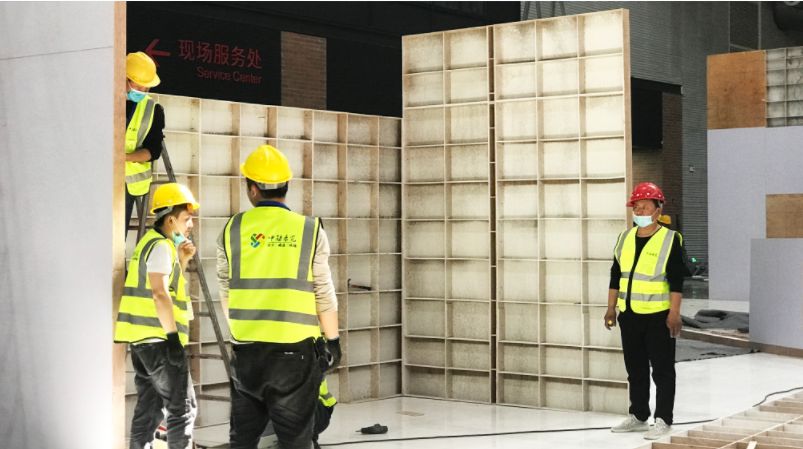 展臺搭建現(xiàn)場施工團隊規(guī)范化安裝作業(yè)