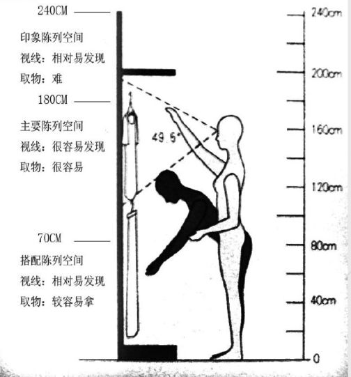 A.展出內(nèi)容在2.4米的高度,適合形象展出,相對容易發(fā)現(xiàn),但是取物較難。展出內(nèi)容在1.8米高度,展出內(nèi)容位置最佳,適合主要實物展出,很容易被發(fā)現(xiàn),取物也很容易;展出內(nèi)容在70厘米高度,展出內(nèi)容的位置較差,合適輔助展示,取物相對容易。