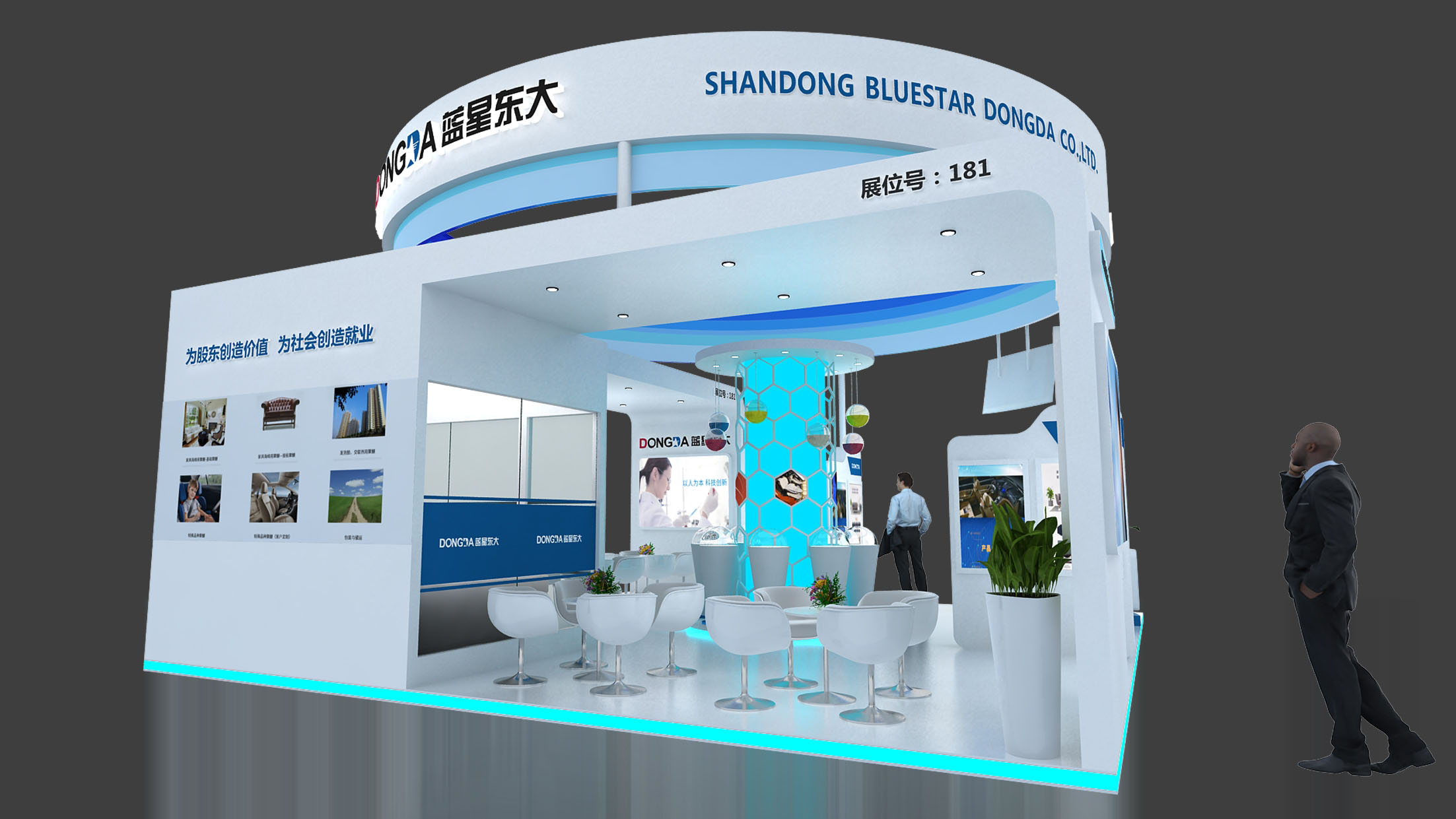 山東藍(lán)星東大有限公司是國(guó)家大型企業(yè),隸屬于中國(guó)化工集團(tuán)下屬的中國(guó)藍(lán)星(集團(tuán))股份有限公司,山東省高新技術(shù)企業(yè),國(guó)家火炬計(jì)劃重點(diǎn)高新技術(shù)企業(yè)。主要產(chǎn)品及規(guī)模為9萬(wàn)噸環(huán)氧丙烷、25萬(wàn)噸聚醚多元醇,聚醚多元醇是中國(guó)石化行業(yè)知名品牌、山東省名牌產(chǎn)品。公司秉承發(fā)展“綠色化工”的理念,已成為我國(guó)重要的化工新材料生產(chǎn)基地。同時(shí)公司堅(jiān)持走出去戰(zhàn)略,積極參與國(guó)際競(jìng)爭(zhēng),努力開(kāi)拓國(guó)際市場(chǎng),與世界上30多個(gè)國(guó)家和地區(qū)開(kāi)展了貿(mào)易往來(lái),逐步成為一個(gè)充滿生機(jī)和活力的現(xiàn)代大型化工企業(yè)。藍(lán)星東大在中國(guó)國(guó)際化工展覽會(huì)設(shè)計(jì)展臺(tái)搭建上表現(xiàn)搶眼,中勵(lì)展覽能夠?yàn)榭蛻敉昝澜桓陡黝?lèi)展臺(tái)設(shè)計(jì)搭建。
