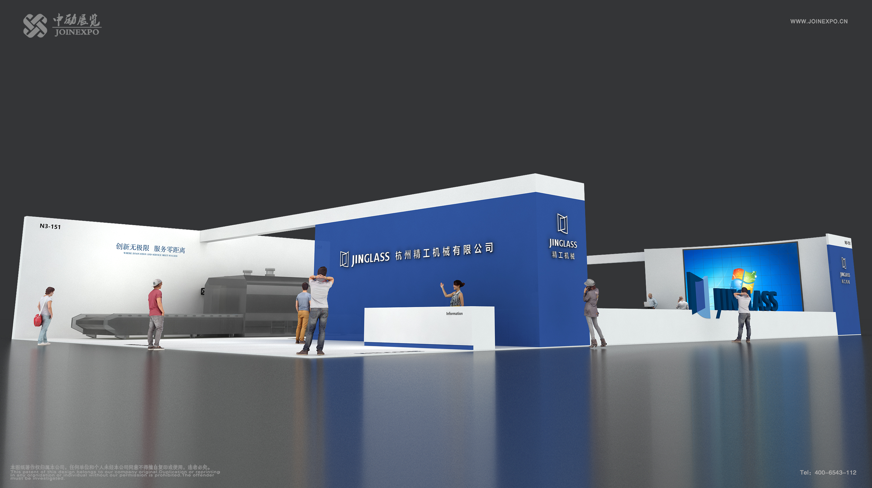 機(jī)械展臺(tái)設(shè)計(jì)的很簡(jiǎn)潔,國(guó)際范