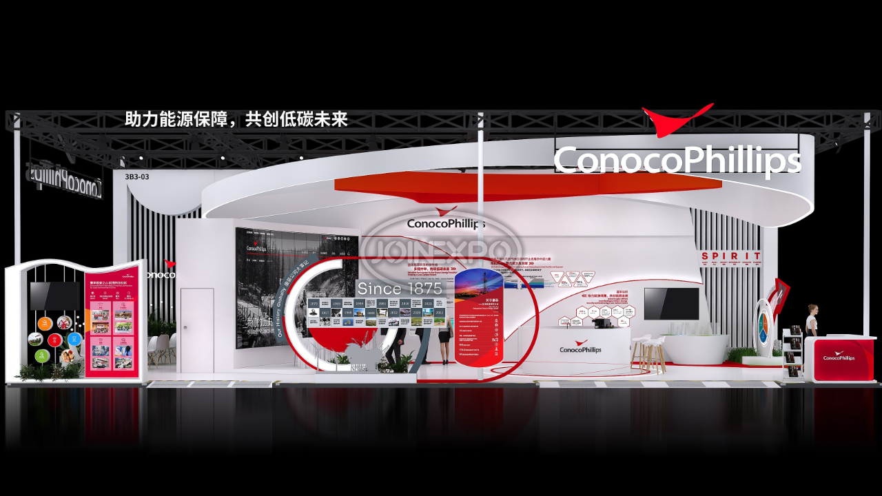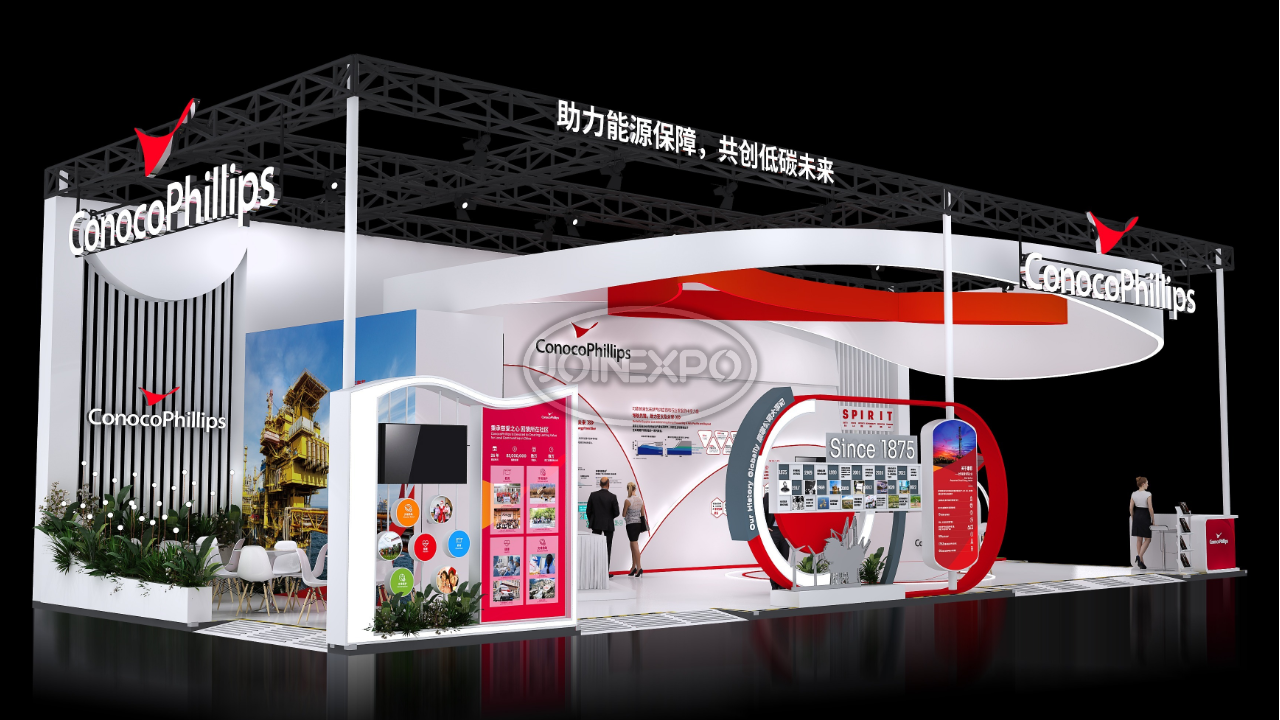 自20世紀80年代以來,康菲一直是中國忠誠的合作伙伴,也是中國上游油氣行業(yè)最大的外商投資者之一。在過去近40年中,康菲將在中國的業(yè)務(wù)范圍擴大到了各個領(lǐng)域,包括石油、天然氣勘探和生產(chǎn)、液化天然氣供應(yīng)和其他相關(guān)業(yè)務(wù)。目前,康菲在北京和天津(塘沽)兩地設(shè)有辦公室??捣瞥兄Z以負責(zé)任的態(tài)度參與能源開發(fā)及生產(chǎn),關(guān)注作業(yè)所在地區(qū)的長遠發(fā)展,為利益相關(guān)方創(chuàng)造長期價值。康菲致力于履行企業(yè)社會責(zé)任,以當下亟需解決的民生問題為本,通過長遠并創(chuàng)新的戰(zhàn)略規(guī)劃,希望長期改善當?shù)鼐用竦纳?。中勵展覽為康菲石油設(shè)計搭建的展臺用流暢的線條和簡潔的色彩搭配,構(gòu)筑出讓人賞心悅目的參觀展臺。
