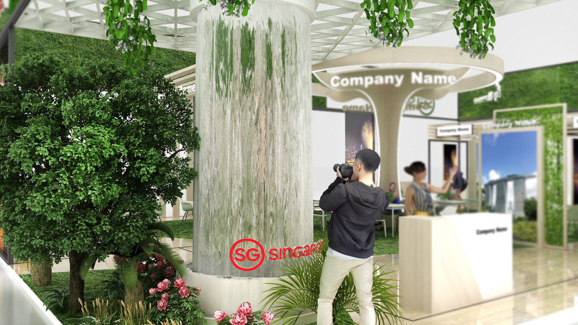 新加坡的展臺(tái)搭建設(shè)計(jì)比較符合新加坡的國(guó)家特色呢,滿眼的綠色