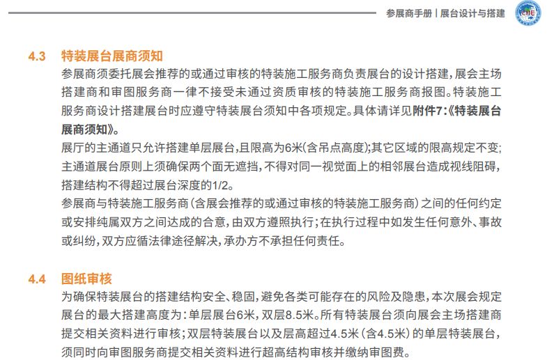 CIIE進(jìn)博會(huì)參展商手冊(cè)規(guī)定進(jìn)博會(huì)搭建高度